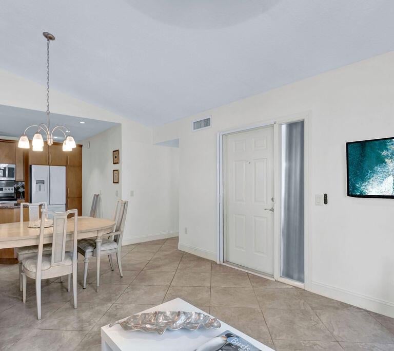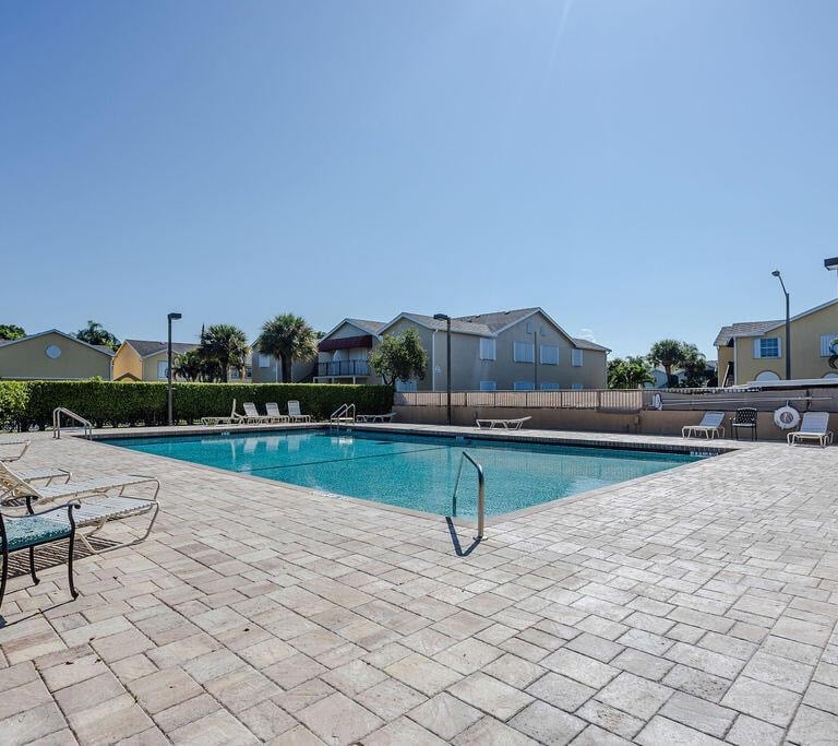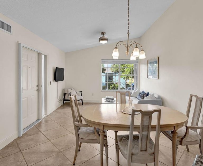 Enjoy tile flooring throughout for easy maintenance and a carpet-free lifestyle. Additional features include an in-unit washer and dryer, accordion shutters, and convenient first-floor storage. Step out onto your covered private patio, the perfect spot to relax with morning coffee or evening cocktails.