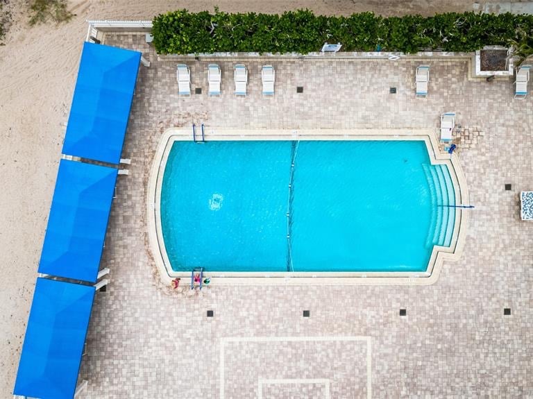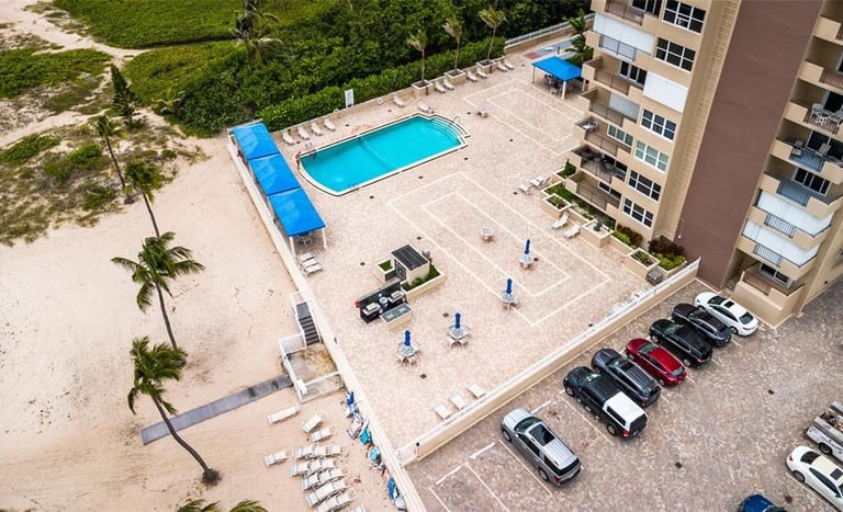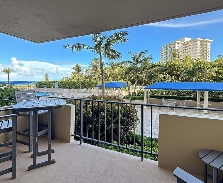 Located directly on the sand, this beautifully updated residence offers an oversized balcony overlooking the pool and ocean, along with private deeded beach access just steps from your door.